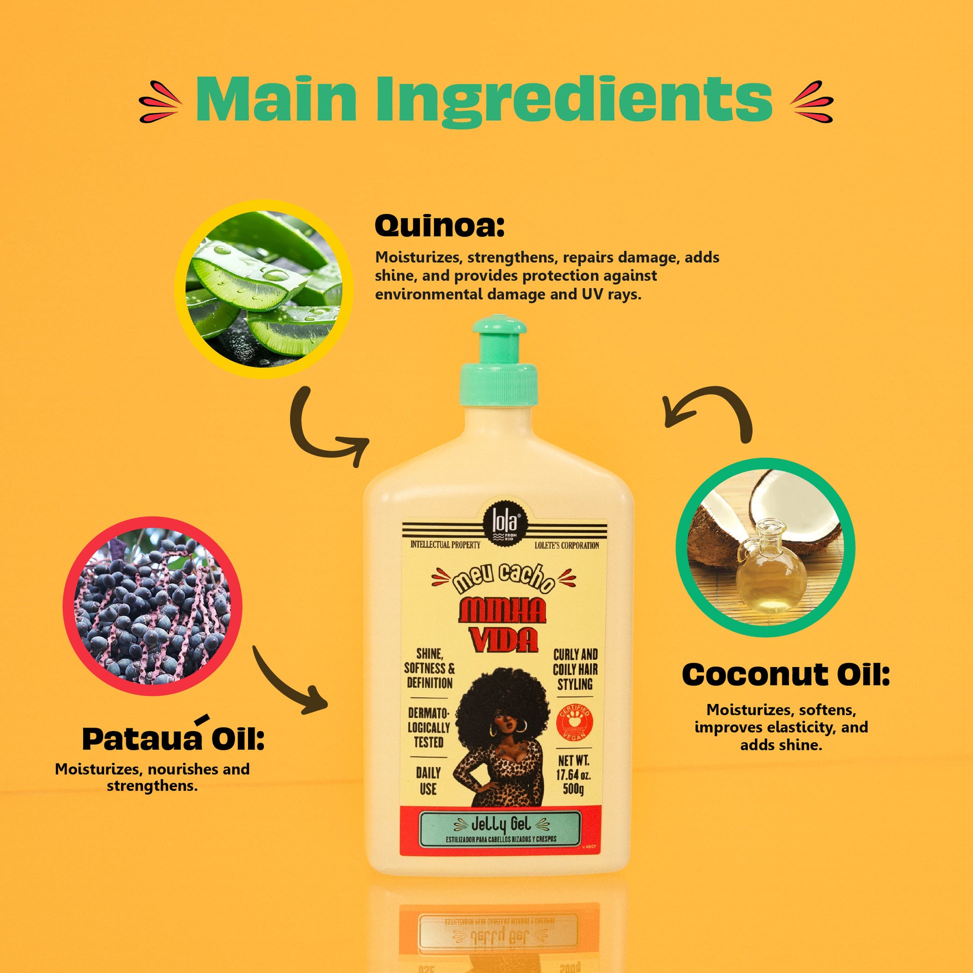 A Jelly Gel that gives vibrant curls and waves with high definition. Its moisturizing formula provides amazing frizz-free finishing and it's perfect for day after! What you need to know: It styles your curls and adds everlasting volume. Its Quinoa active and Patauá Oil provides moist that prevents the damage caused by humidity loss.